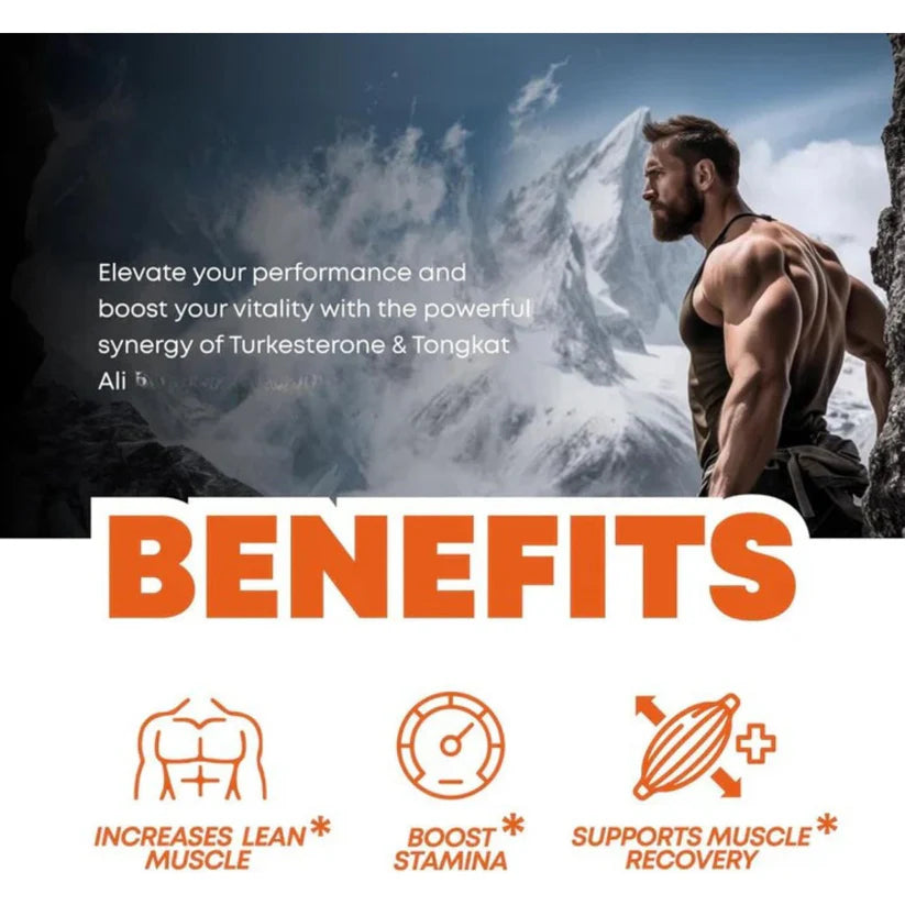 Combines Turkesterone and Tongkat Ali, known for their energy-boosting properties, to enhance stamina and vitality in daily life.